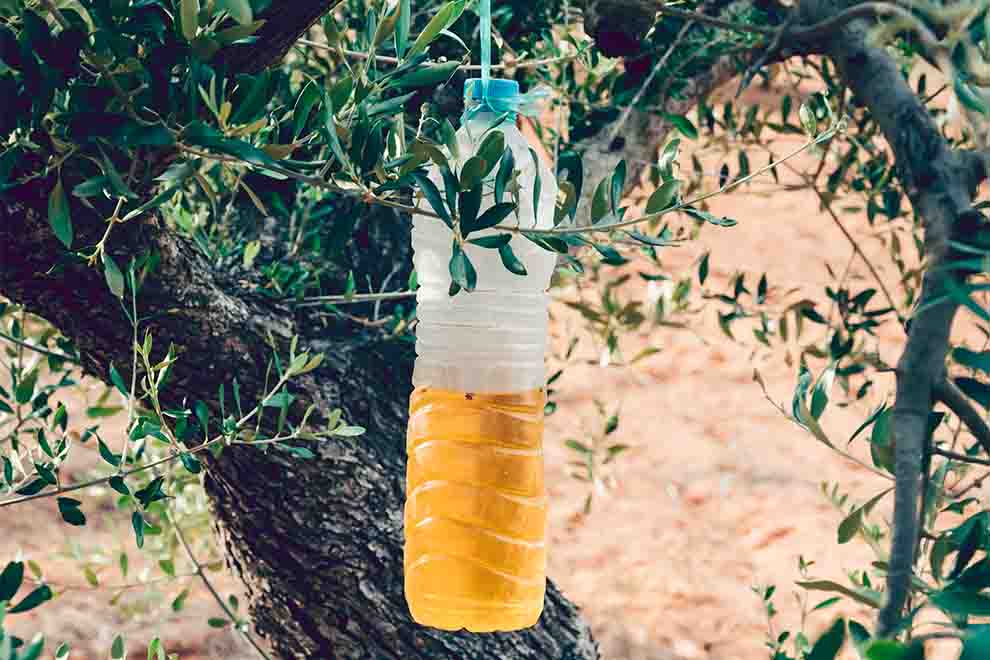 As armadilhas caseiras são alternativas econômicas e ecologicamente corretas para o controle físico de insetos. Uma opção eficiente envolve o uso de garrafas plásticas cortadas, preenchidas com uma mistura de açúcar, vinagre e água. Posicione próximo às plantas mais vulneráveis para capturar moscas, lesmas e outros visitantes indesejados.